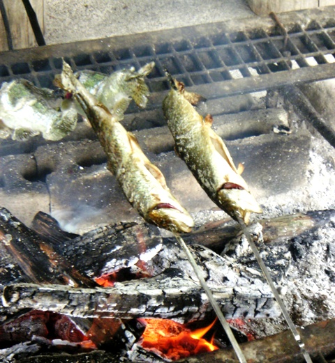 広場内の釣り堀は、釣り放題で、釣った魚も